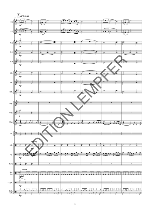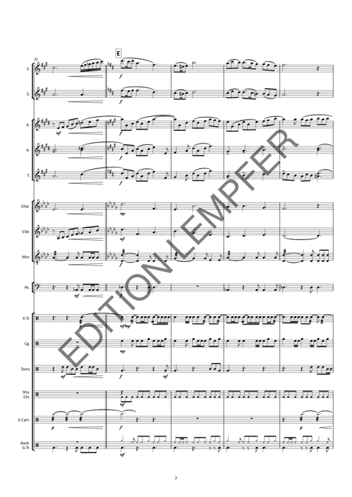 - Stabspiele: Glockenspiel, Vibraphon (ad lib), Marimba (Bass) [2 Spieler+]