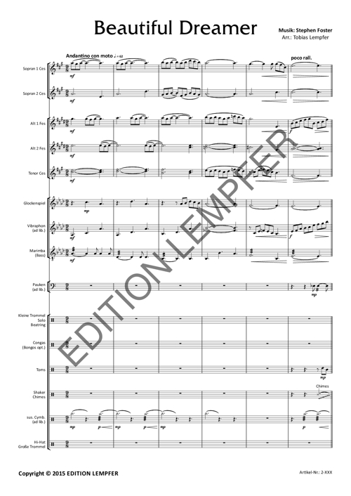 Der amerikanische Komponist Stephen Foster (1826-1864) ist vor allem durch Lieder wie „Oh! Susanna“ und die „Camptown Races“ bekannt. Seine Ballade „Beautiful Dreamer“ ist in den USA ein echter Gassenhauer und wird auch bei uns gerne gespielt. Die Ballade liegt hier in einem weichen, stimmigen Arrangement vor, das für alle Besetzungen gut geeignet ist.